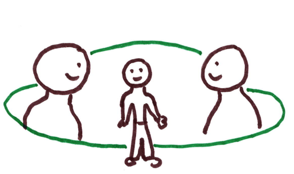 Ici, la personne accompagnée est au centre.